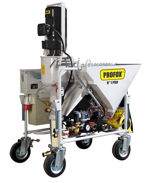 PROFOX® N° 1 PRO stroj za žbukanje za sve strojne suhe mortove. Može se puniti direktno iz vreće ili putem silomat haube. Stroj se sastoji od nekoliko rasklopnih jedinica koje omogućavaju lagani i jednostavan transport stroja kod manjih zahvata ili malih težina.